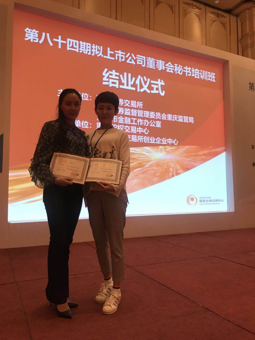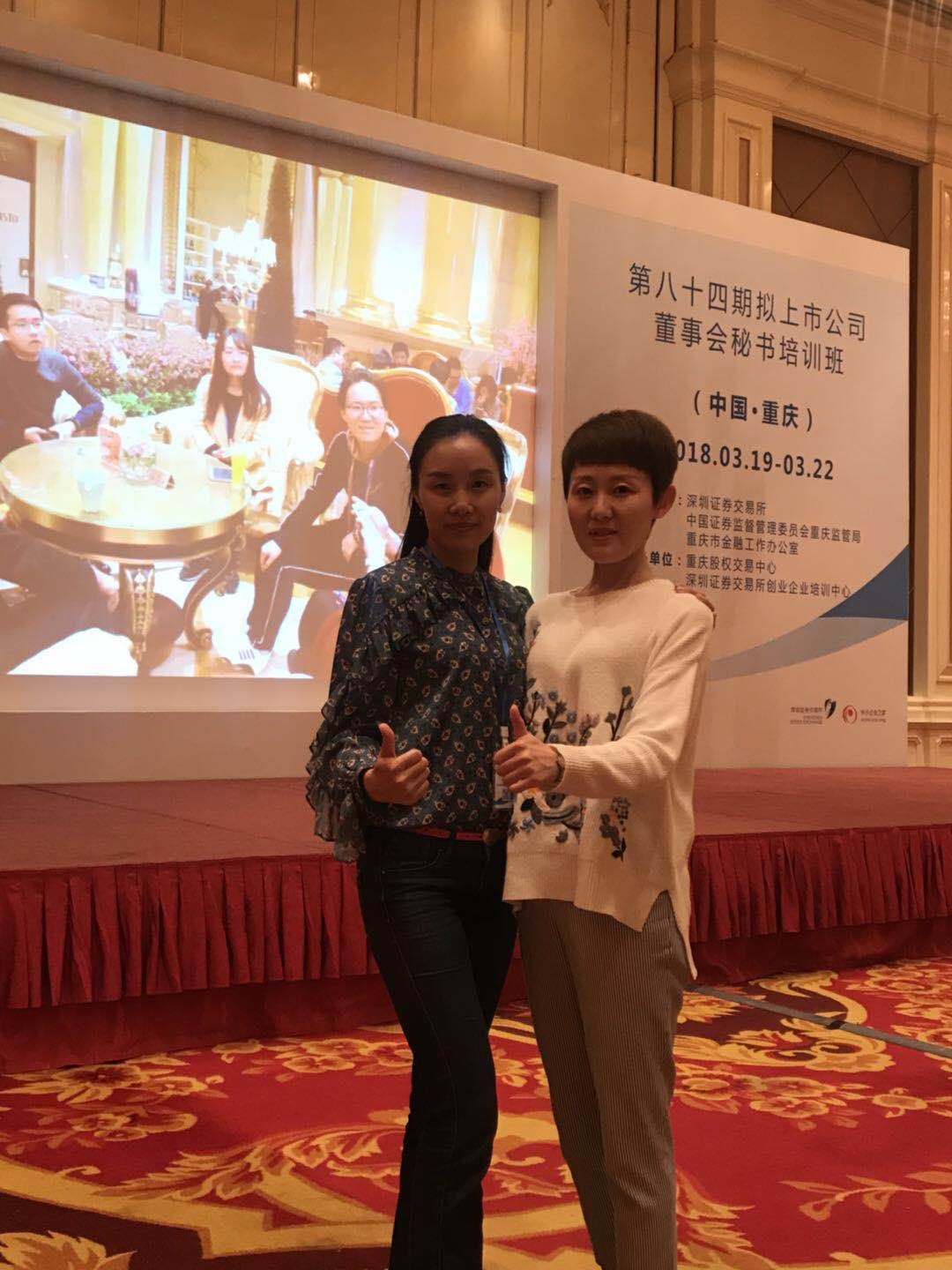 (本网讯)2018年3月19日-22日,我公司财务总监、董事会秘书两人参加深交所在重庆举办的“拟上市公司第八十四期董事会秘书培训班”。最终,两位都顺利通过考试并取得董秘资格证。