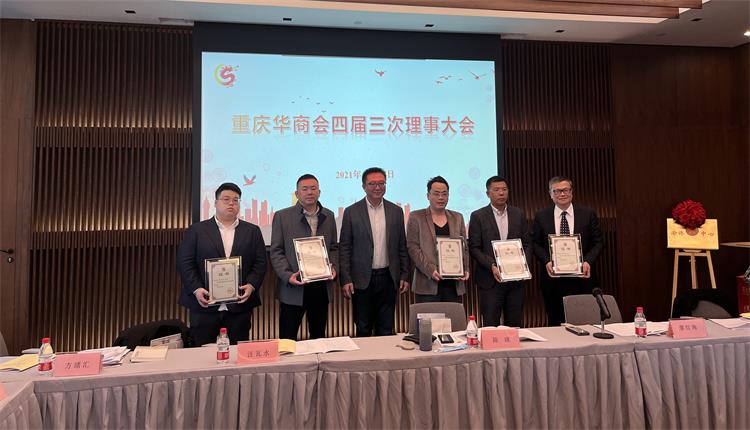 2021年11月18日下午,重庆华商会四届三次理事大会在重庆“渝桥中心”胜利召开。重庆市侨联陈瑛副主席、渝中区邓光怀副区长,以及华商会的各位会长、理事,渝中区相关职能部门的领导莅临出席。重庆霏洋环保科技股份有限公司刘必衍董事长受邀出席此次会议。