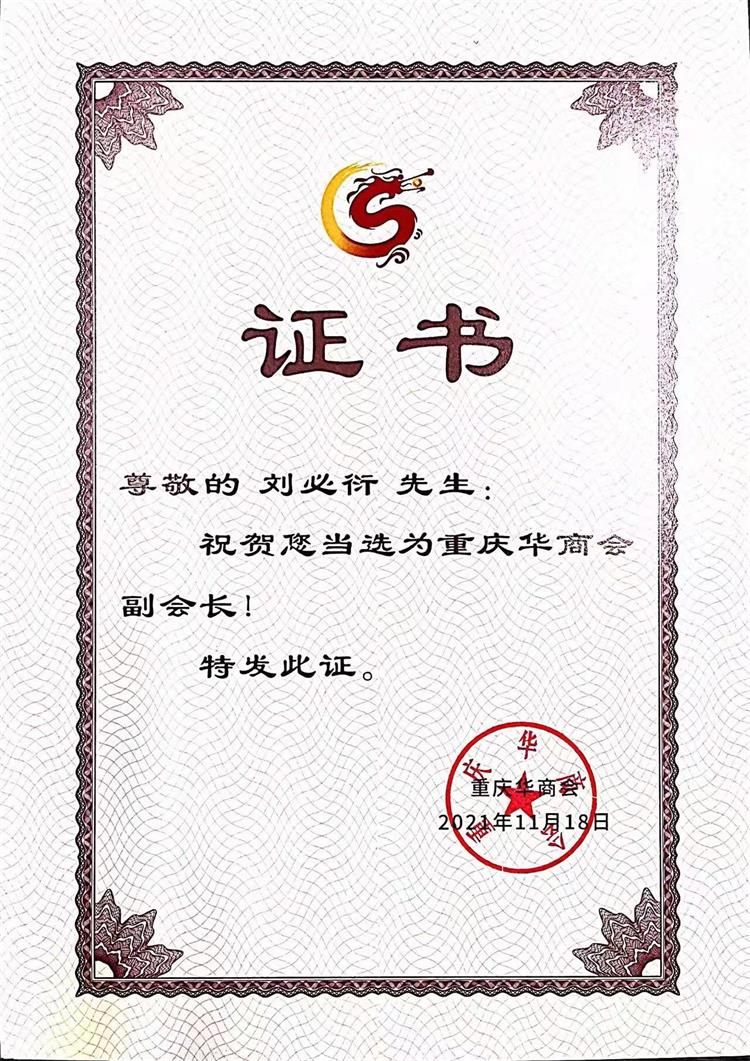 对于此次当选重庆华商会副会长,刘必衍董事长表示,感谢重庆市侨联、重庆华商会领导及所有会员的支持与肯定,我们将铭记企业责任、不忘初心、全力以赴,为夯实商会组织建设,促进重庆经济社会发展做出更大贡献。